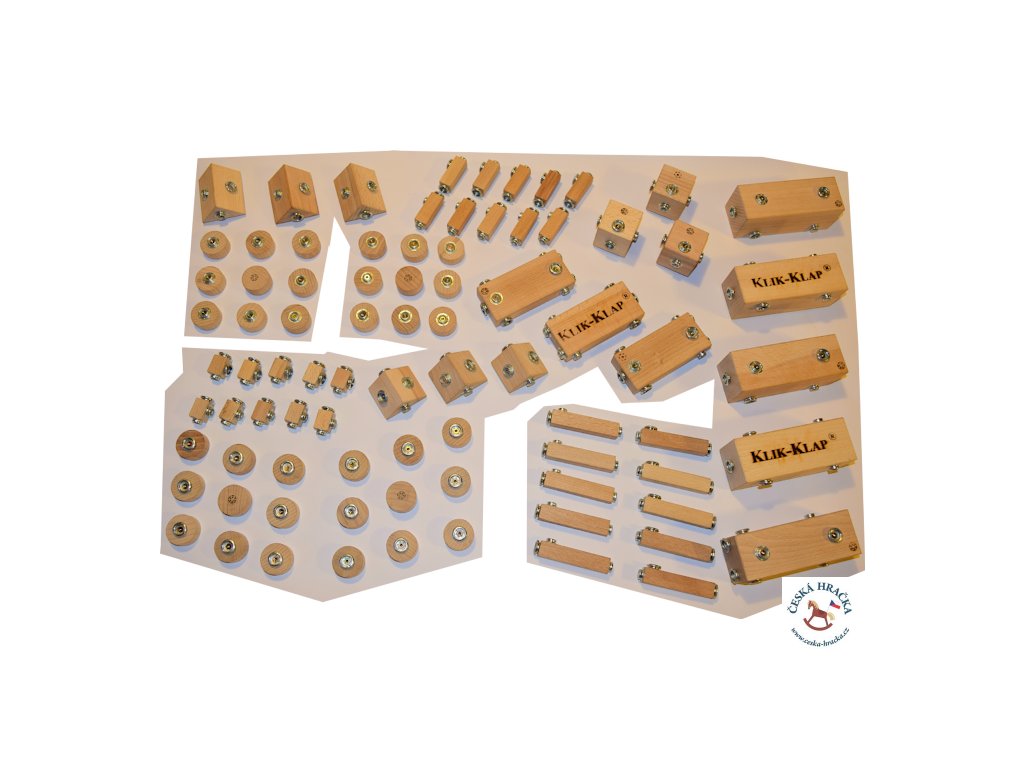 Těchto 83 dílů se specifickým rozmístěním 120 párů Klik-Klap druků připevněných pomocí 240 vrutů umožňuje vytvořit na 13 256 různých sestav.