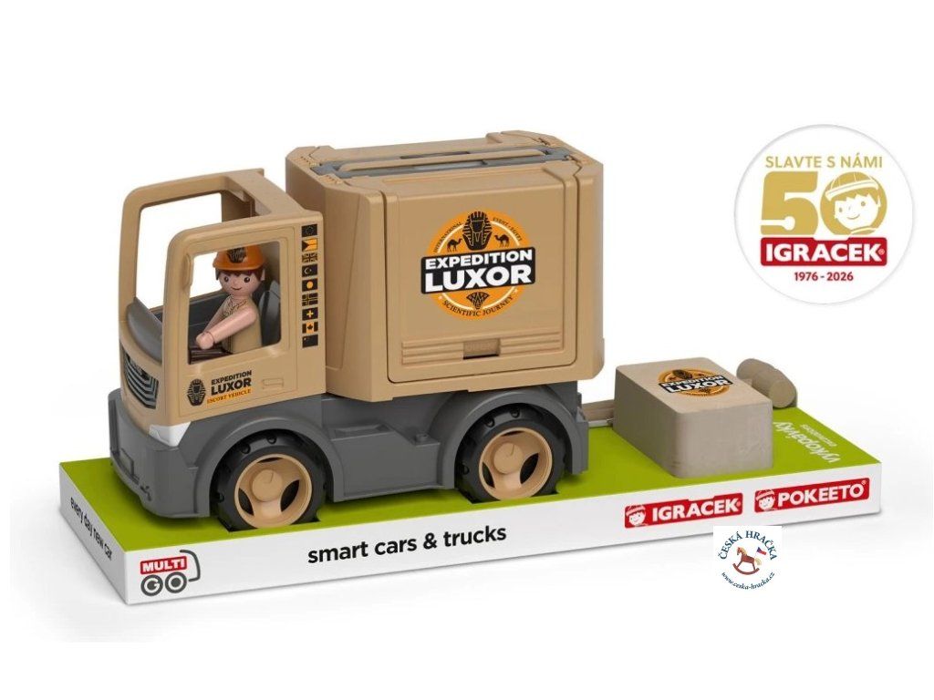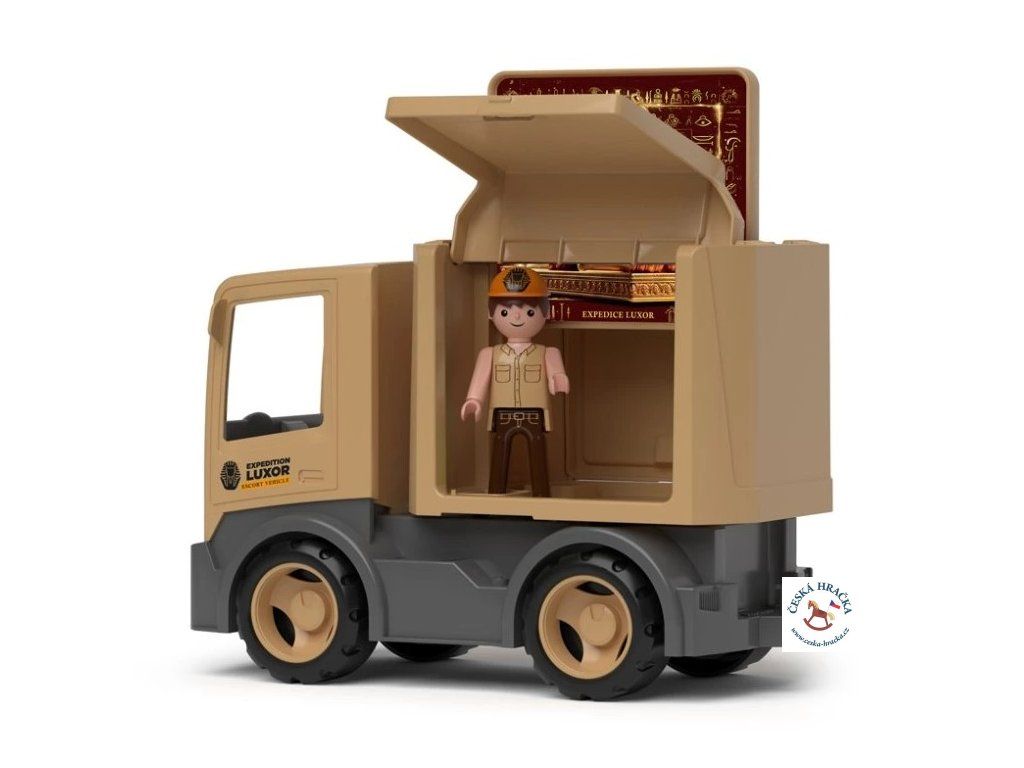 Vyrážíme na dobrodružnou výpravu za tajemstvím starověkého Egypta! Posadíte Igráčka archeologa do robustního expedičního náklaďáku MultiGO®, naložíte nástroje a vyrazíte hledat legendární poklady. V vykopávkovém bloku čeká překvapení — zlatá sfinga, kterou mohou děti opatrně objevit pomocí přiloženého dřevěného nářadí. Hra, která propojí fantazii, trpělivost a radost z objevování, právě začíná!