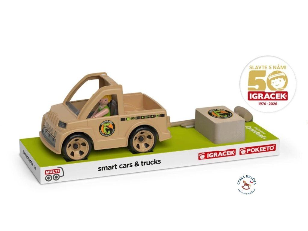 Vzhůru s Igráčkem® v expedičním pickupu MultiGO® na dobrodružnou paleontologickou výpravu! Opatrně odhrňte písek, prach a hlínu – s pevným dřevěným nářadím odhalíte fosilii rohatého dinosaura Styracosaura. Čeká vás parádní objevování, trpělivé bádání a spousta příběhů z doby, kdy planetu obývali dinosauři.