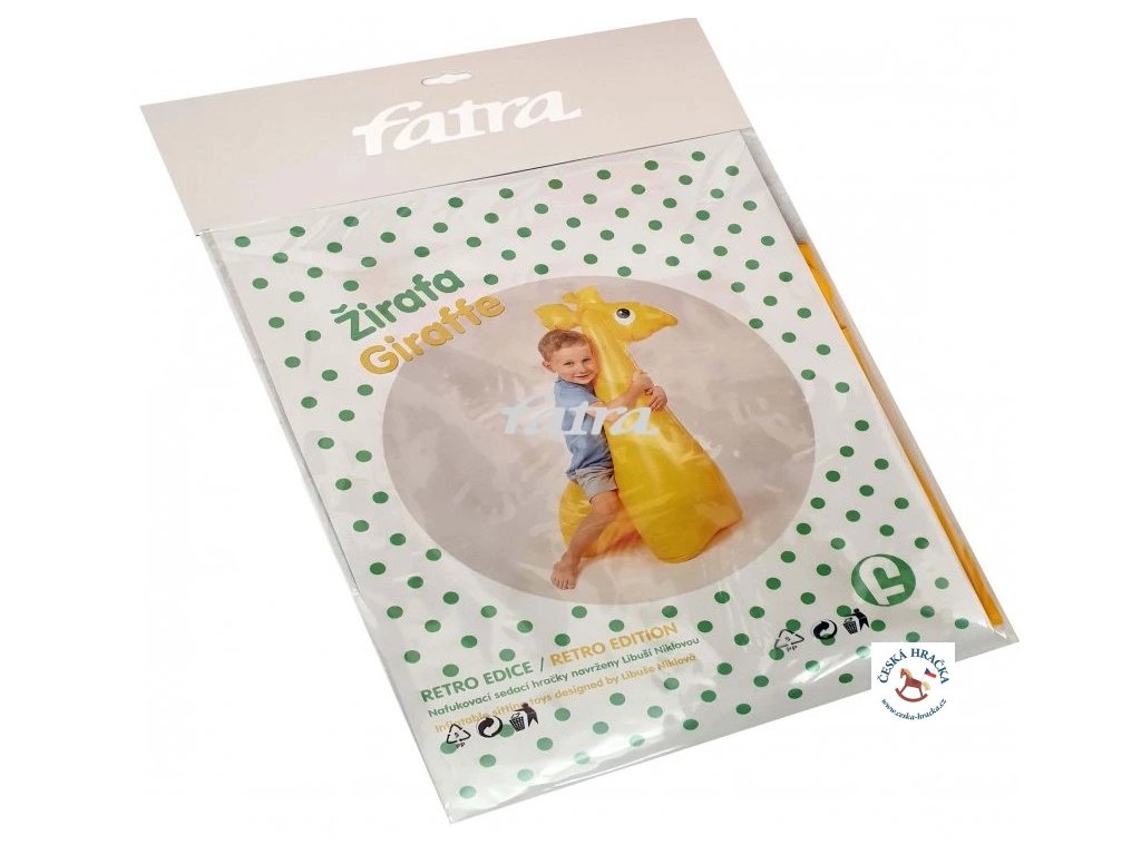Ač postrádá typické hnědé skvrny, je žirafa z Fatry Napajedla jednou z nejznámějších svého druhu na světě. Proslulost ji přinesl promyšlený design, funkčnost a hlavně obliba u dětí. Nafukovací žlutá ŽIRAFA Libuše Niklové je zpátky a její ergonomicky tvarované tělo a bezpečný materiál zajistí nejen vašim dětem hodiny zábavy. Žirafa nemá pískátko.